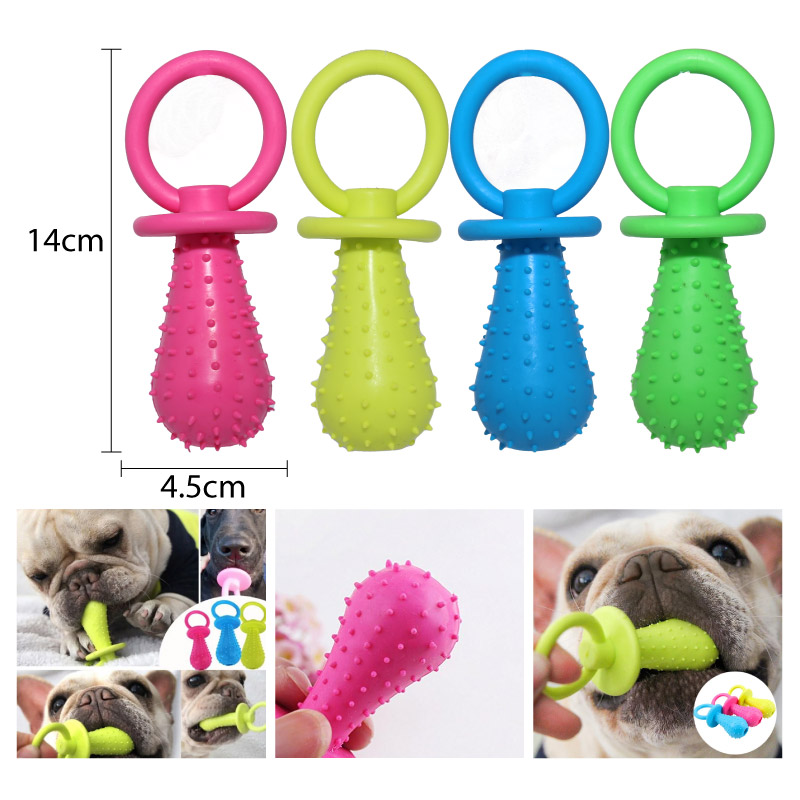Juguete de goma para mascotas con diseño de chupete.